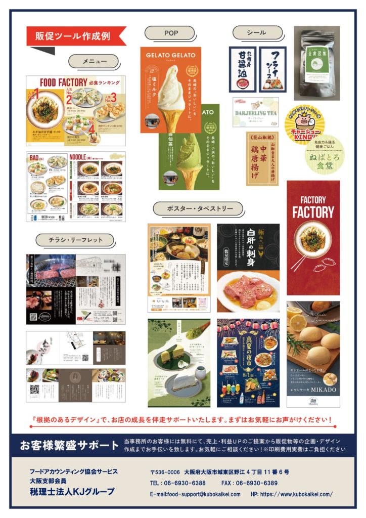 フードアカウンティング協会 大阪支部会員 税理士法人KJグループでは、通常の税務や 会計に関する業務にプラスして飲食業に特化した繁盛化サポートを実施しています!!